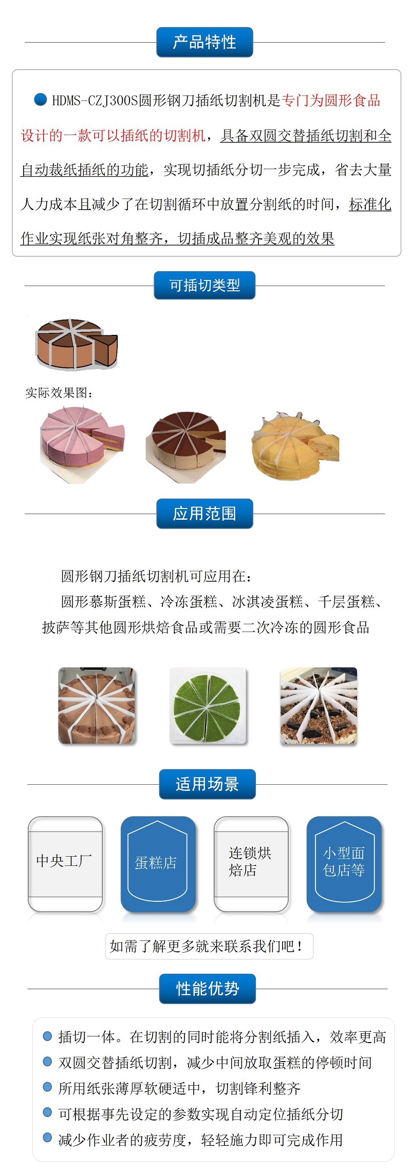 該設(shè)備利用超聲波高頻振動(dòng)切割,可同時(shí)插紙切割一個(gè)圓形的蛋糕